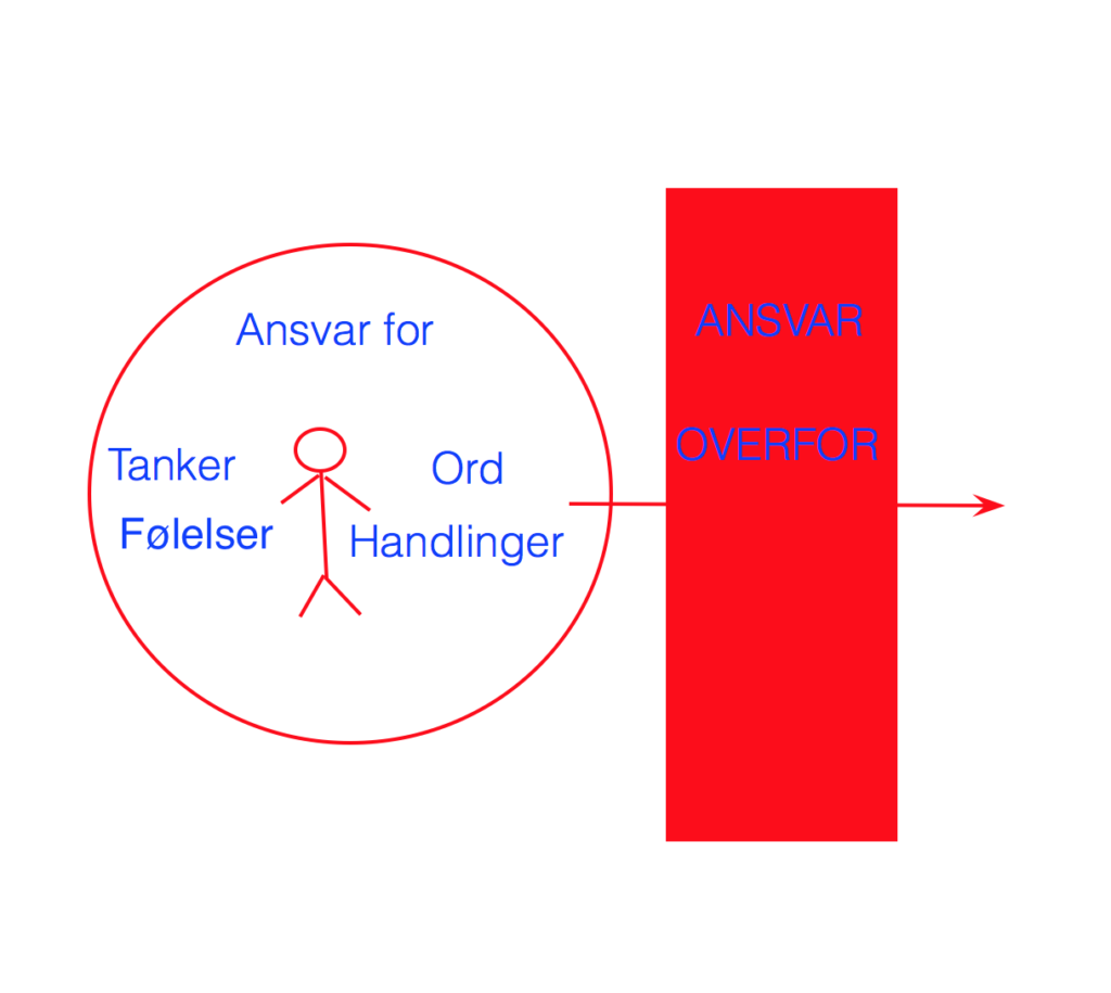 • Når Stine neste gang har fått verktøy til å handle slik hun ønsker, er hun ærlig og tydelig, ved at hun takker pent nei. Mottakeren av denne tydelige beskjeden er Stines venninne. Venninnen har ansvaret for hvordan hun vil ta imot denne beskjeden, ikke Stine. Stine har lært at hun bare kan ta ansvar for sine intensjoner, og har ikke ansvar for den andres reaksjoner. Den andres reaksjon er bokstavelig talt utenfor hennes kontroll. Hun skiller mellom det som er hennes ansvar og andres. Hun kan bare ta ansvar for sine egne tanker, følelser, ord og handlinger.